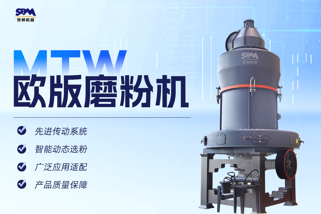 上海世邦針對煤矸石硬度適中、成分復雜的特點,采用創新研發的MTW歐版磨粉機,使用錐齒輪整體傳動、內部稀油潤滑系統、弧形風道等多項技術,粉磨效率高,高產值低能耗,是煤矸石制粉的理想設備選擇。