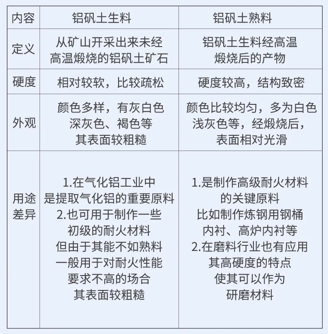 生料指未經(jīng)煅燒的天然礦石,保留原始礦物結(jié)構(gòu),多用于水泥混合材或化工填料;熟料則經(jīng)高溫煅燒脫除結(jié)晶水,鋁含量提升且結(jié)構(gòu)致密,是高端陶瓷、耐火磚及電解鋁的關(guān)鍵原料。